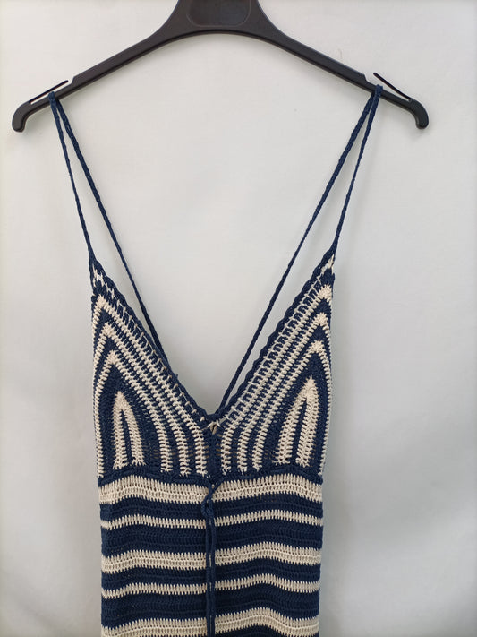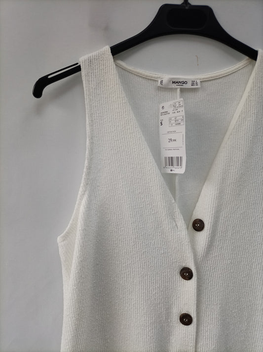 MANGO. Vestido midi punto blanco roto. T XS (tara)