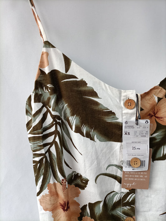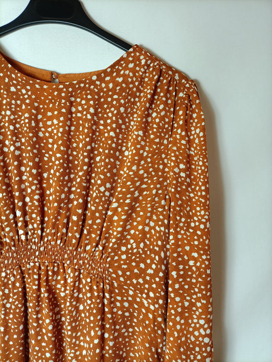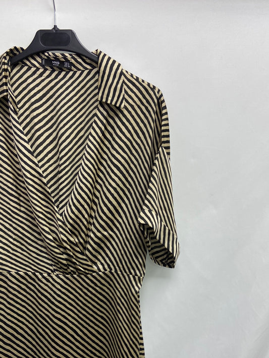 MANGO. Vestido midi estampado hilos drados. T M
