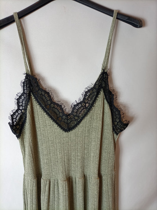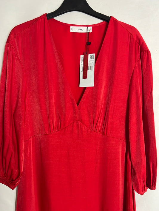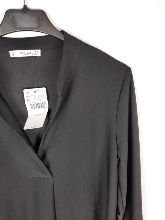 MANGO. Vestido negro corto de manga larga fluido elástico T. m