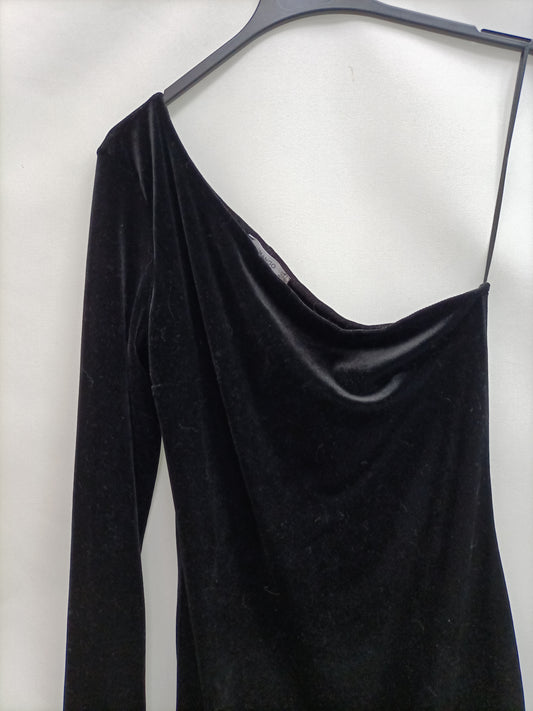 MANGO. Vestido terciopelo detalle lentejuelas T.S