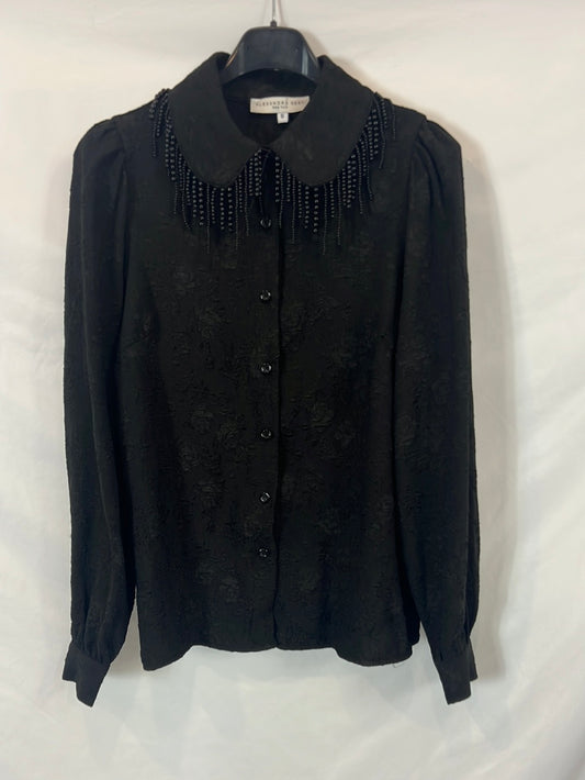 ALEXANDRA NEEL. Blusa negra bordada flecos T.s