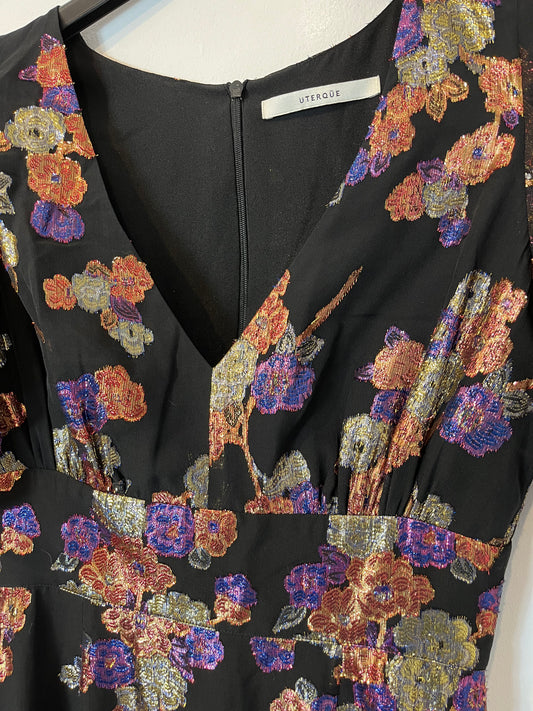 UTERQÜE. Vestido seda hilos metalizados. T XS