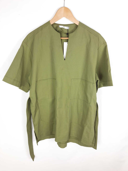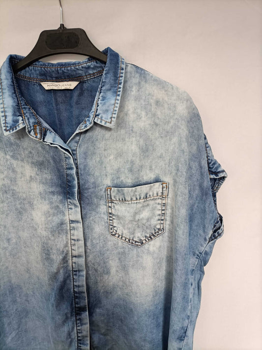 MANGO.Camiseta beige oversized cuello perkins T.m