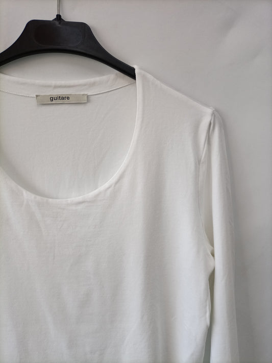 GUNEX. Pantalón textura color crudo costuras. T 36