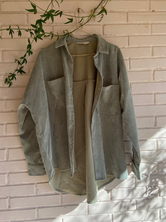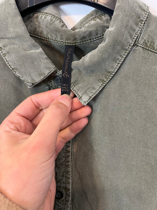 STRADIVARIUS. Camisa verde efecto desgastado. T S