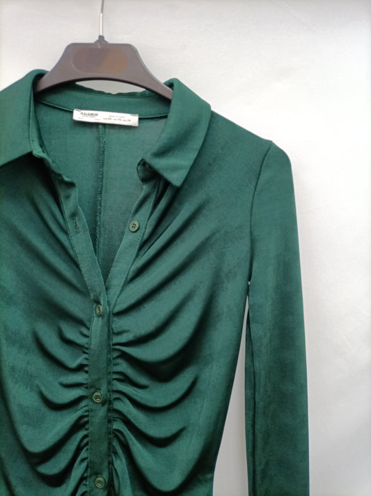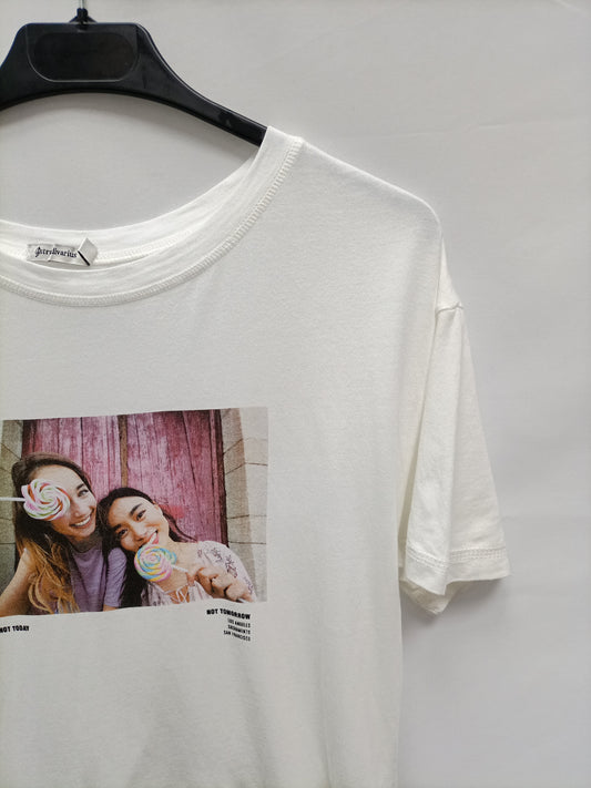 STRADIVARIUS. Vestido largo punto elástico flores. T S