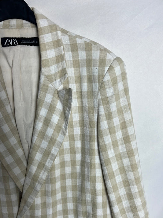 ZARA. Blazer cuadros beiges y blancos. T XS (oversized)