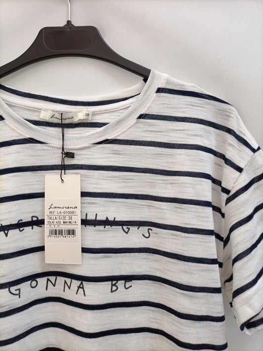 LA MAGLIETTA. Blusa blanca detalle negro Tu (m/l)