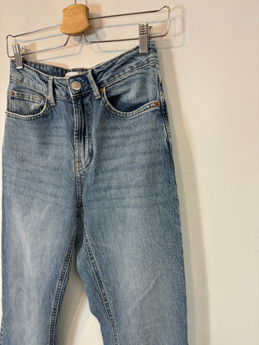 STRADIVARIUS. Denim efecto desgastado mom silm. T 38