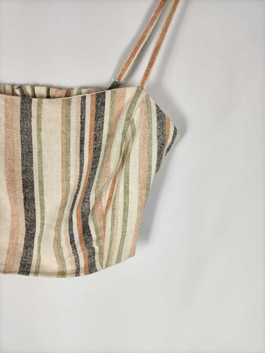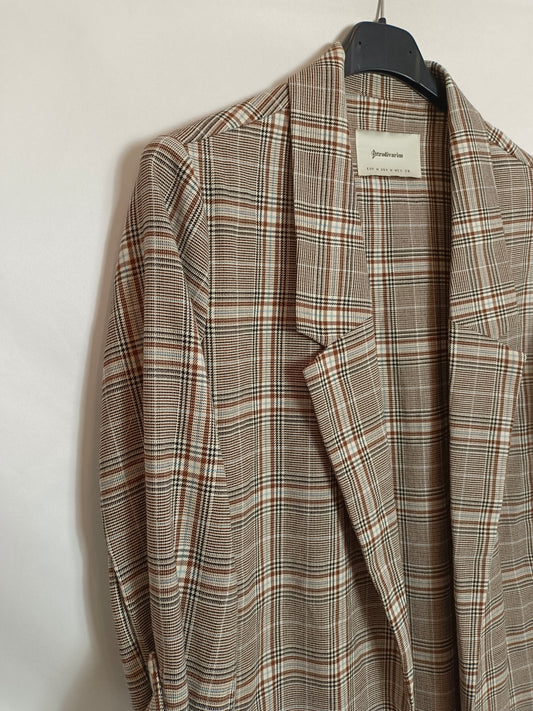 STRADIVARIUS. Chaqueta de rayas en negro y mostaza cremallera T. m
