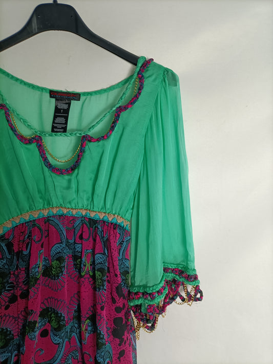 CUSTO BARCELONA. Vestido doble textura estampado. T 1 (XS)