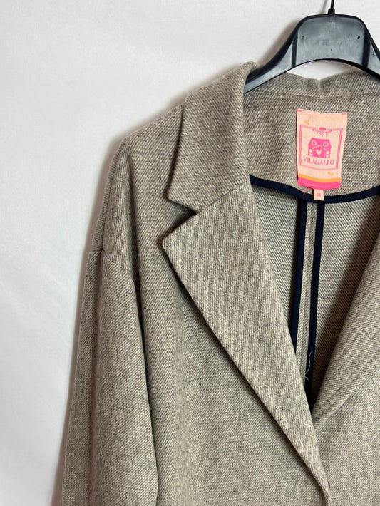 VILAGALLO. Chaqueta larga beige jaspeada detalle mangas. T 38