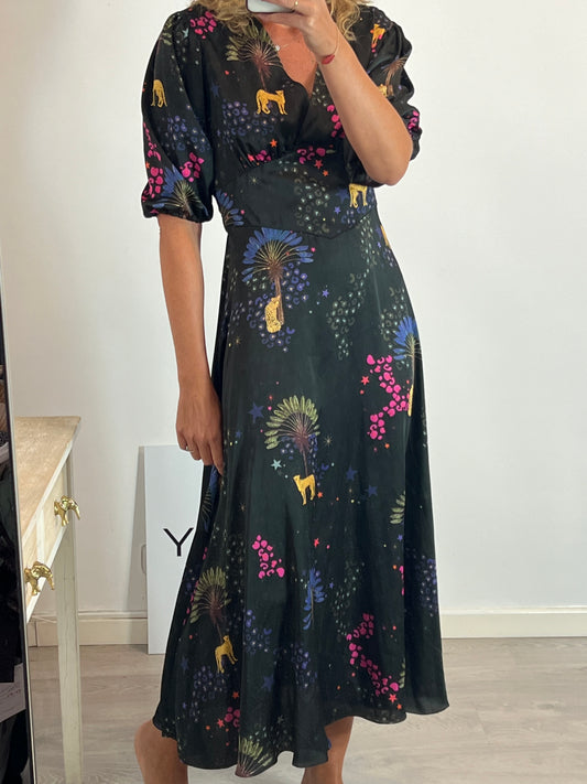 VILAGALLO. Vestido seda estampado colores. T 40