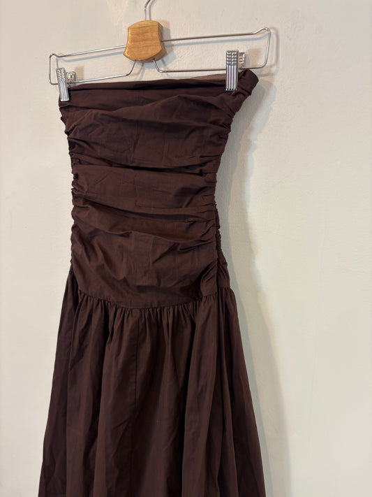 PEPPERMAYO. Vestido largo palabra de honor chocolate