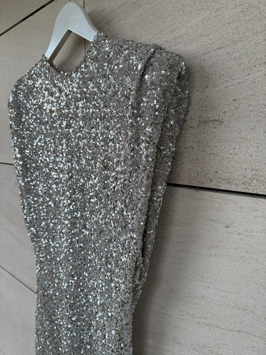MARIA DE LA ORDEN. Vestido largo azul fruncidos
