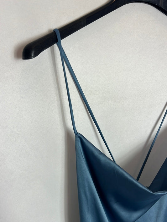 OTRAS. Vestido midi Lino verde efecto desgastado. T 40(36)