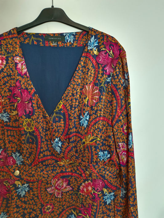 LLOYD’S. Vestido lino azul estampado flores. T 44