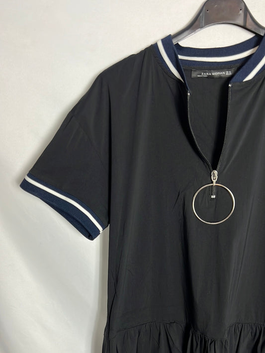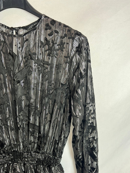 BIMBA Y LOLA. Vestido negro midi estampado. T XS