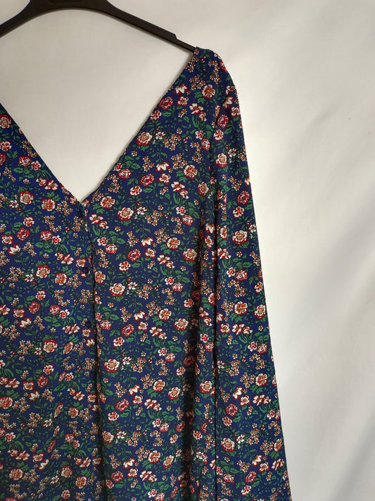 NEW LOOK MATERNITY. Vestido negro flores asimétrico. T 38