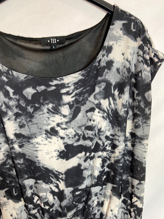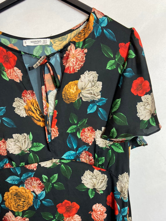 SANDRO. Vestido corto negro fluido dibujos. T S