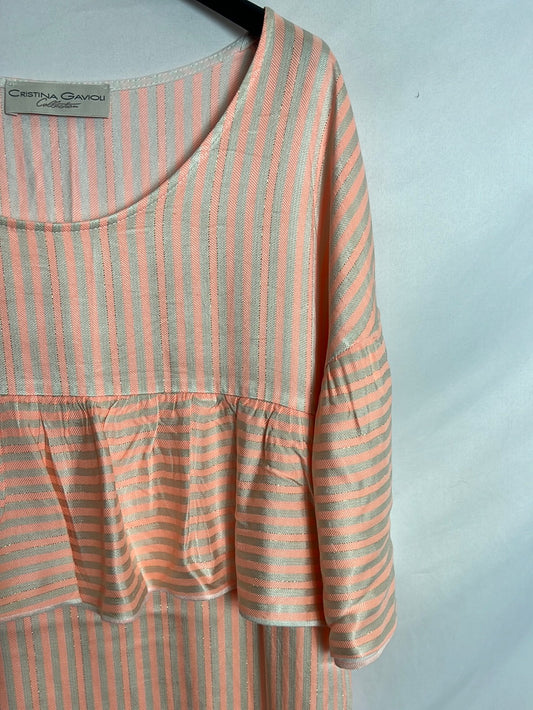 CRISTINA GAVIOLI. Vestido corto rayas hilos dorados. T 40