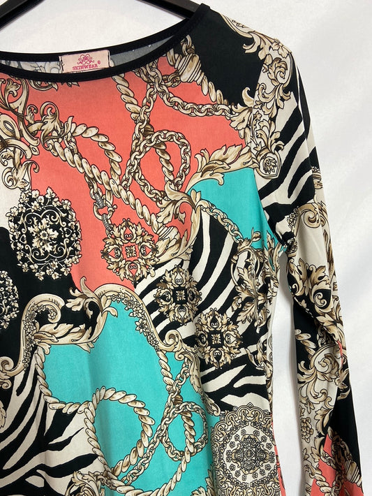 NEW COLLECTION. Vestido midi estampado apreturas. T M