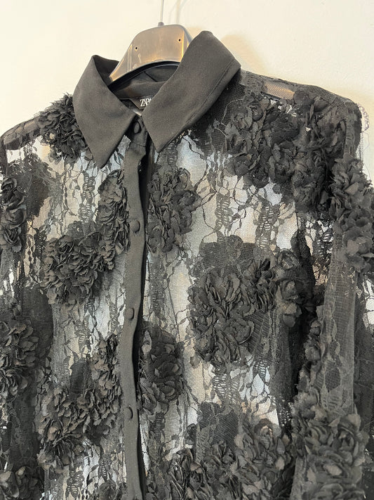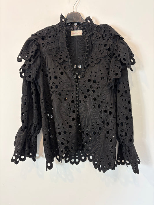 ANGEL OF THE NORTH. Chaqueta/ sobre camisa troquelada negra. T S