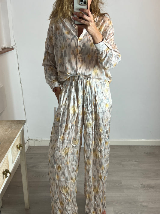 DES PETITS HAUTS. Blusa beige estampada. T 1(S)