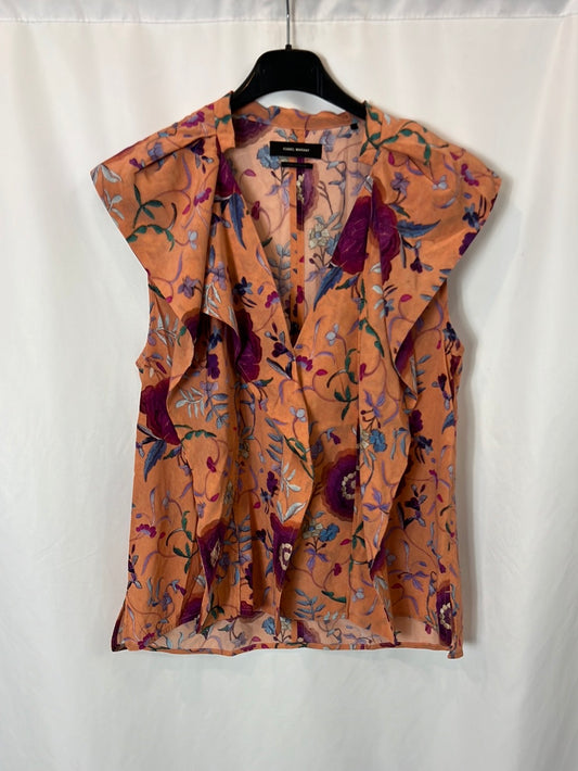 ISABEL MARANT. Blusa seda sin mangas estampada. T 36