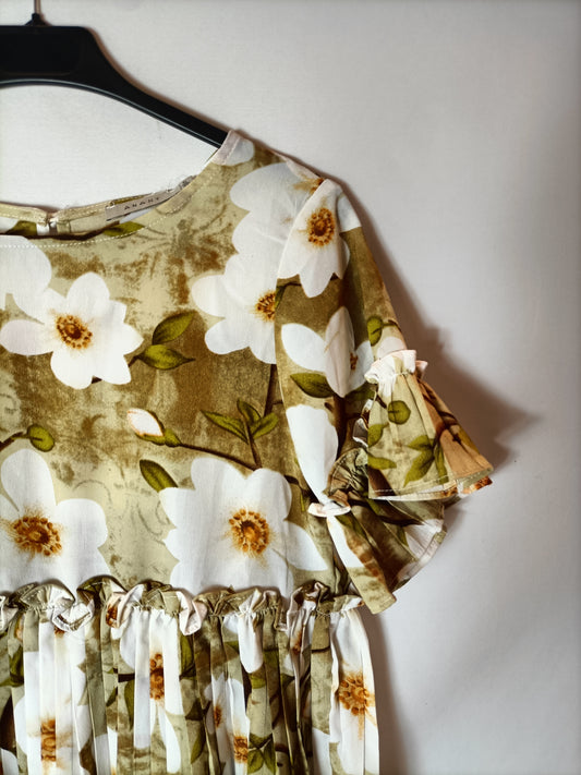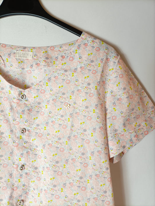 MI CANESÚ. Blusa flores manga corta rosa. T G (m)