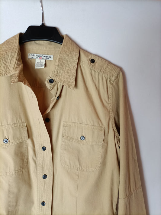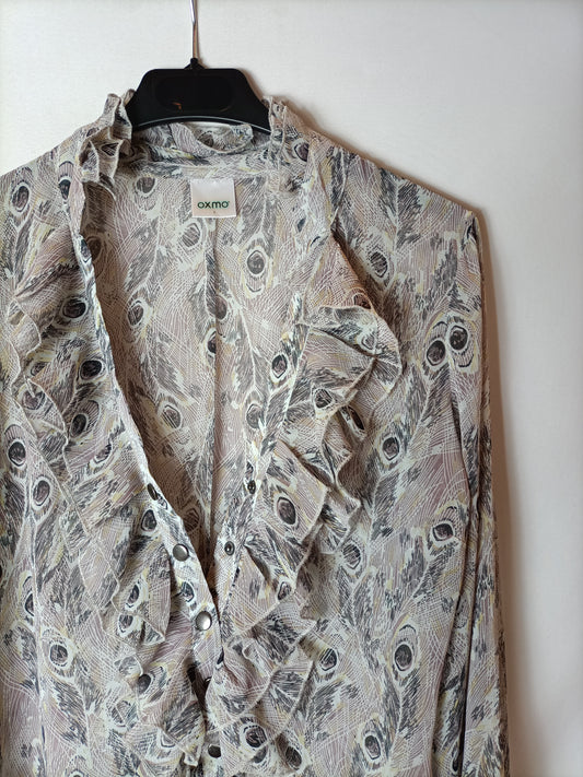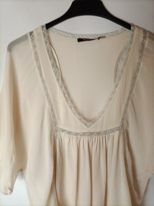 BASSEMENT. Blusa beige semitransparente encajes. T M