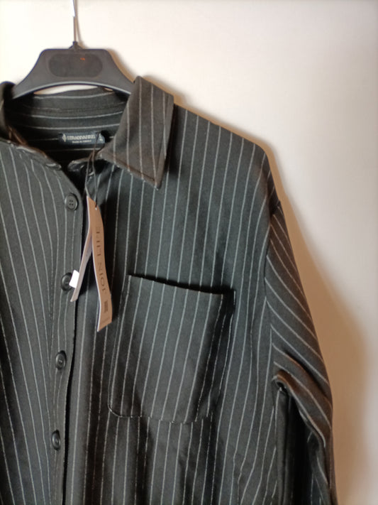 STRADIVARIUS. Sobre camisa negra raya diplomática, T M
