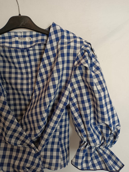 ZARA. Camisa blanca fluida con detalle en negro T.XXL