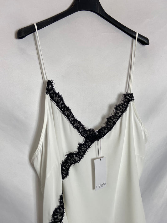 FESTA. Blusa blanca fluida con detalle en negro T.52