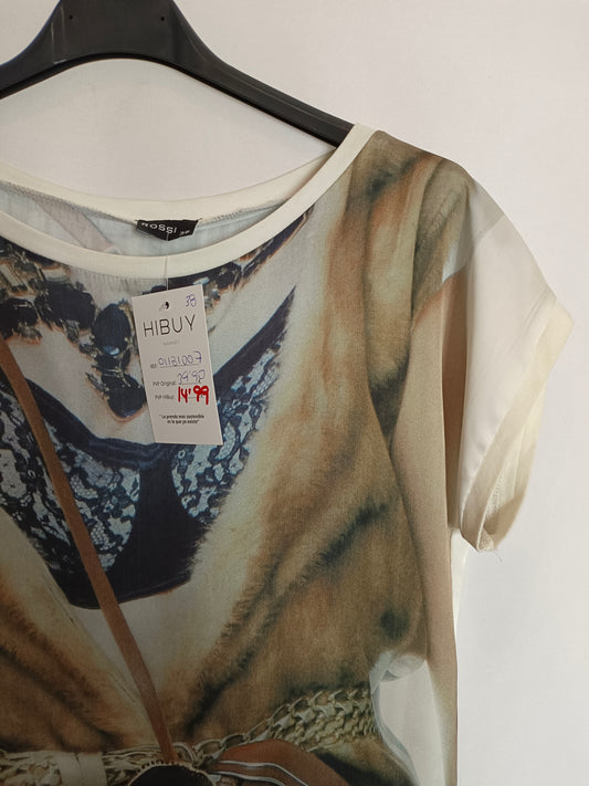 FESTA. Blusa estampada bancos y negros. T 54 (XL)
