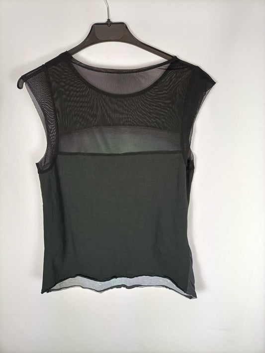 MAJE. Top negro doble textura estampado delantero T. s