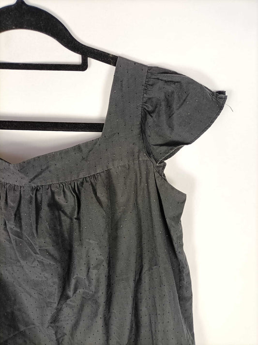 ZARA.Blusa negra botones y acabada en volante T.xs