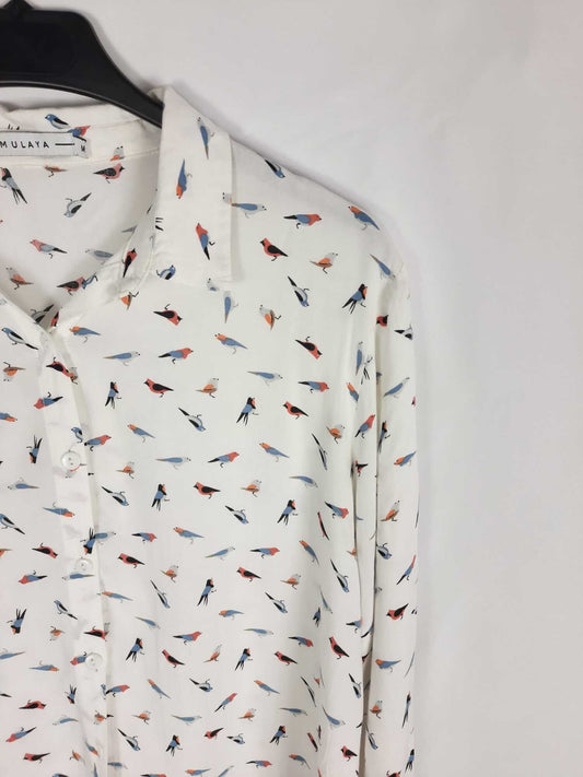 ZARA. Camisa manga corta blanca con bordado ingles T.s