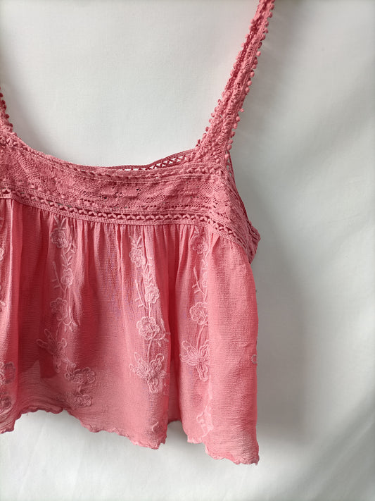 STRADIVARIUS. Blusa blaco roto de manga corta T.s