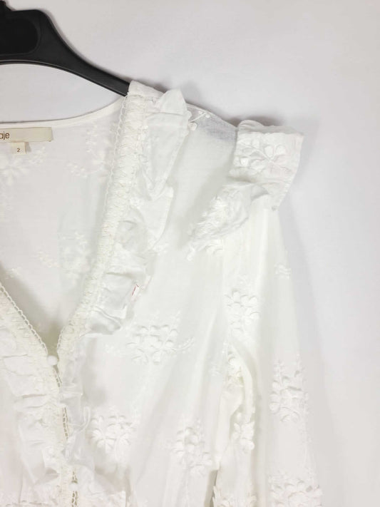 ZARA. Camisa blanco roto con topitos dorados T. s