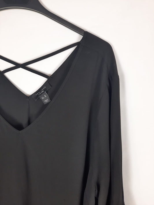 NEW LOOK. blusa negra cuerdas espalda escote pico T.54
