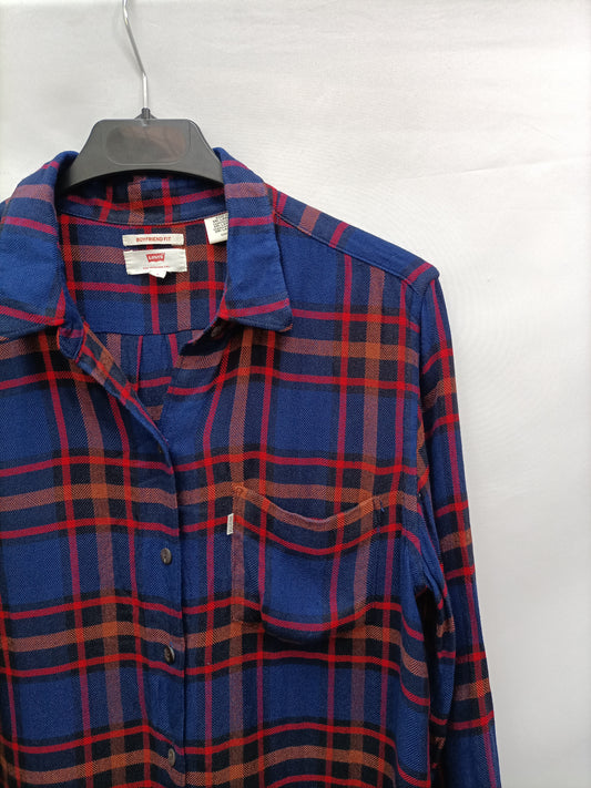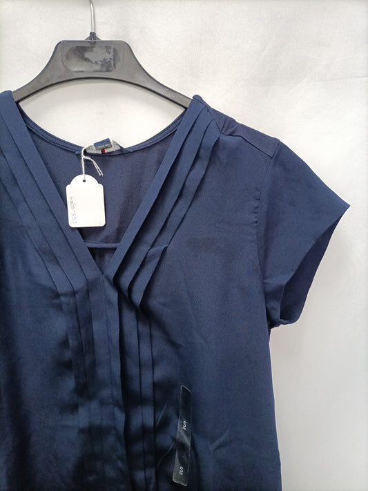 TOMMY HILFIGER. Blusa azul doble textura T.s