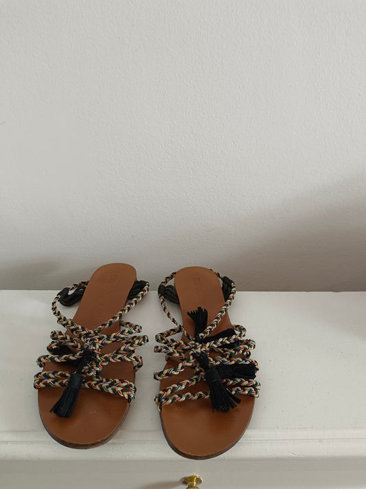 CORTEFIEL. Sandalias troqueladas doradas. T 40