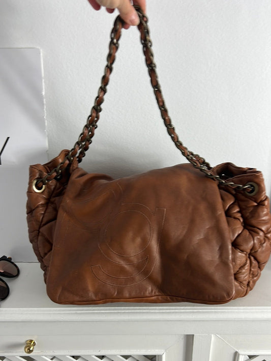 PURIFICACIÓN GARCIA. Bolso marrón piel guateado