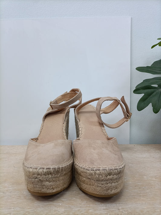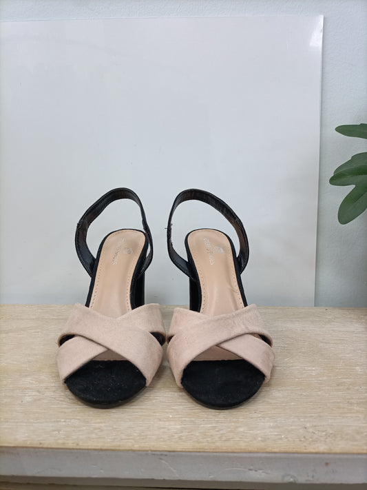 STRADIVARIUS.Sandalias trenzadas tacón beiges T.37