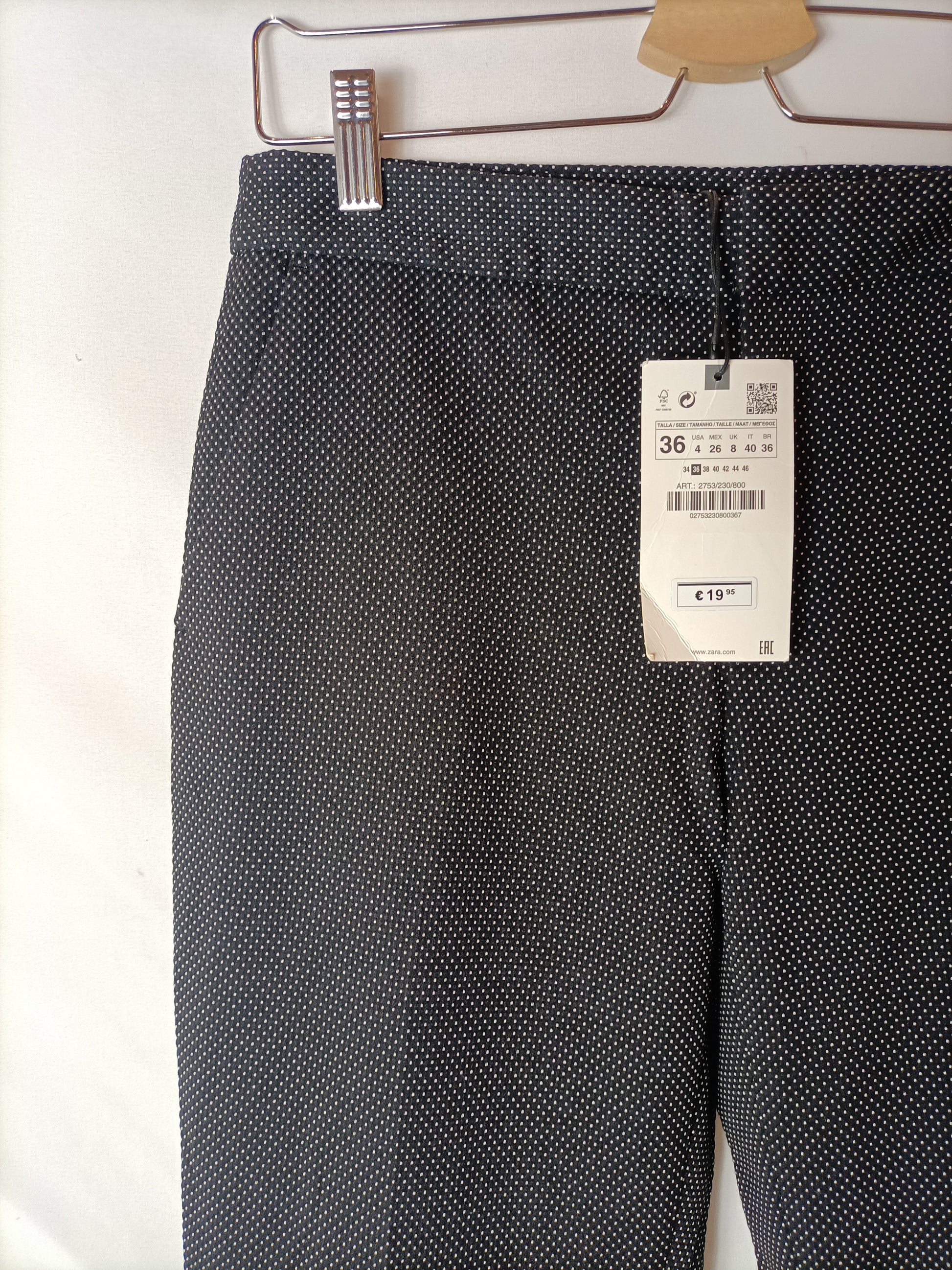 ZARA. Pantalón negro topitos T.36