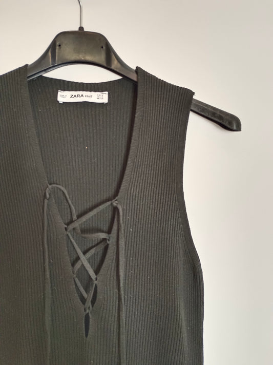 ZARA. Pantalón negro pitillo efecto desgastado. T 36