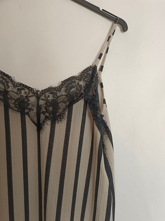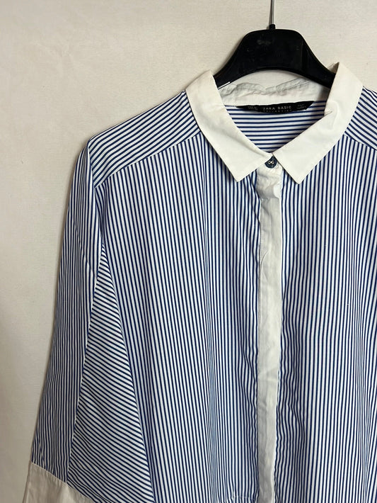 ZARA. Blusa larga negra satinada detalle pedrería. T XL