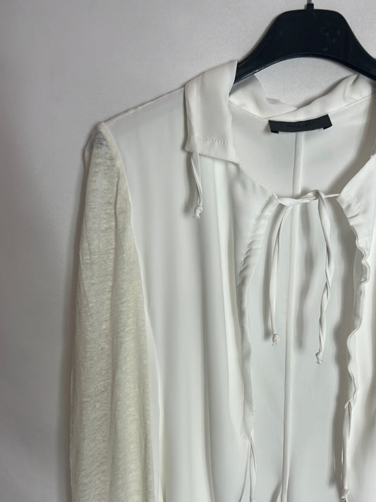 MASSIMO DUTTI. White striped linen-effect blazer. Size 36