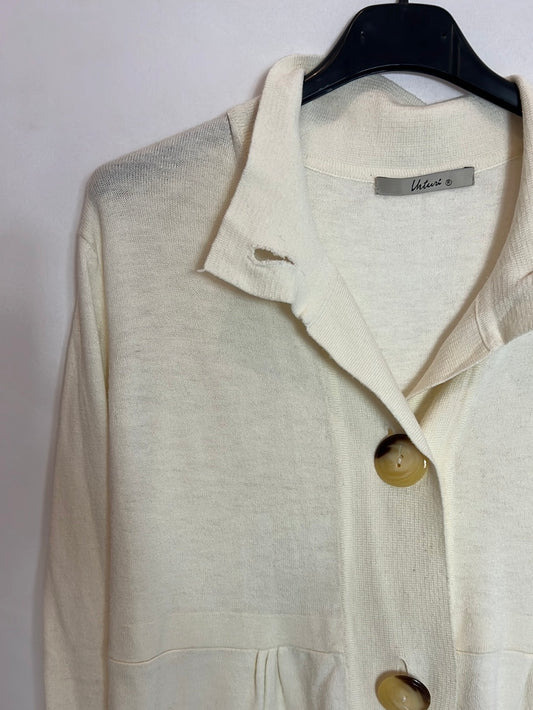 PAUL COSTELLOE LIVING. Long cardigan with gold buttons. Size XL